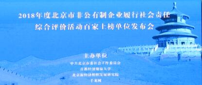 近日,2018年度北京市非公有制企業(yè)履行社會責任綜合評價活動百家上榜單位發(fā)布會在首都經濟貿...
