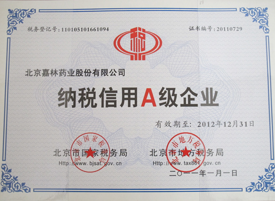 北京市朝陽(yáng)區(qū)國(guó)稅局納稅信用A級(jí)企業(yè)授牌儀式于2011年5月18日在北京市朝陽(yáng)區(qū)國(guó)家稅務(wù)局舉行,我公司再次榮獲由北京市國(guó)家地稅局和北京市地方稅務(wù)局聯(lián)合頒發(fā)的2011年度“納稅信用A級(jí)企業(yè)”榮譽(yù)稱號(hào)。授牌儀式上,朝陽(yáng)區(qū)國(guó)稅局領(lǐng)導(dǎo)宣布授牌企業(yè)名單,企業(yè)代表發(fā)言,明建華局長(zhǎng)作了講話。朝陽(yáng)區(qū)國(guó)稅局領(lǐng)導(dǎo)為嘉林藥業(yè)等80家企業(yè)進(jìn)行授牌。朝陽(yáng)區(qū)現(xiàn)有12.6萬(wàn)家企業(yè),獲得“納稅信用A級(jí)企業(yè)”的有215家。嘉林藥業(yè)一貫秉承誠(chéng)信經(jīng)營(yíng)、依法納稅的理念,自覺遵守稅收相關(guān)法律法規(guī),按時(shí)足額納稅,為打造守法經(jīng)營(yíng)、依法納稅的社會(huì)和諧氛圍做出了貢獻(xiàn)。